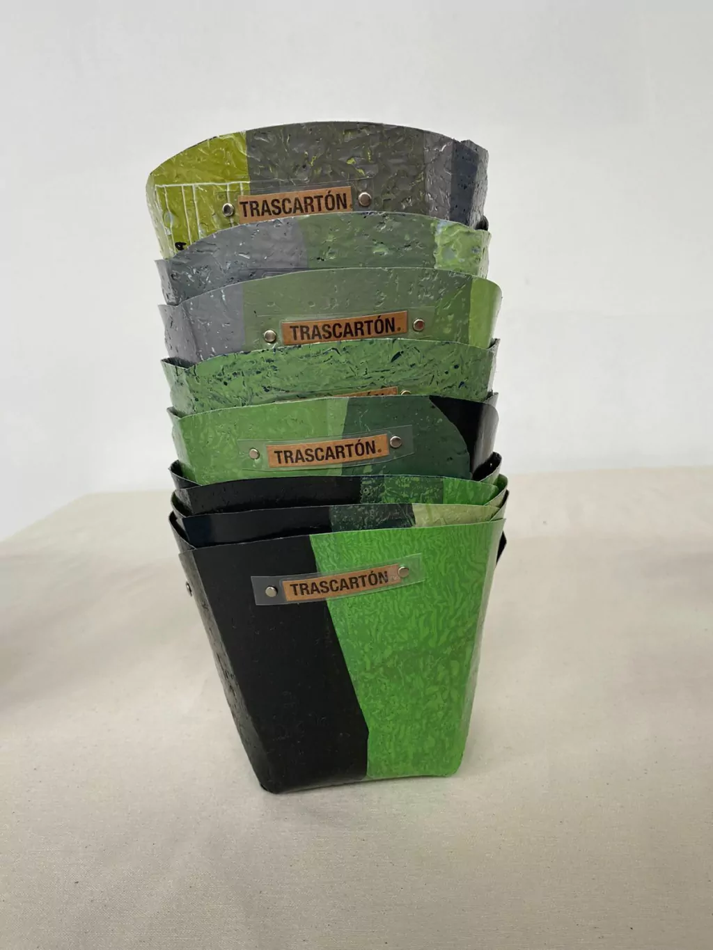 "Trascartón es una unidad productiva del Movimiento de Trabajadores Excluidos -MTE- que diseña, proyecta y fabrica productos a partir de materiales recuperados por cartoneros, carreros y recicladores de la Unión de Trabajadores de la Economía Popular -UTEP-. El proyecto surge en el 2011 integrado por un grupo de jóvenes hijos de padres y madres trabajadores de la Cooperativa El Amanecer de los Cartoneros, que se capacitaron en diseño y agregado de valor, buscando generar una alternativa al uso de los materiales recuperados con una visión de triple impacto: ambiental, económico y social"